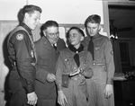 Scouts look at coveted Eagle awards presented them at Arlington Heights Christian Church by Captain Frank Kidd, second from left, Worth Ranch director. At left is Charles Lawson. Dea Stephenson is second from right and James Lane, extreme right. Published in Fort Worth Star-Telegram morning edition, May 26, 1950.