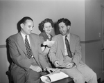 New officers of the Panther City Philatelic Society were installed at the annual banquet at Blackstone hotel. Left to right, they are James A. Quigley, vice president; Mrs. Mildred Brock, renamed secretary-treasurer and Vernon A. Forrester, elevated from the vice presidency to president. Published in Fort Worth Star-Telegram morning edition, May 28, 1950.