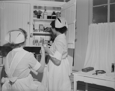 At a two-day open house at the State School for Girls in Gainesville, visitors saw, student nurses at work in the campus infirmary. Published in Fort Worth Star-Telegram morning edition, May 28, 1950. .