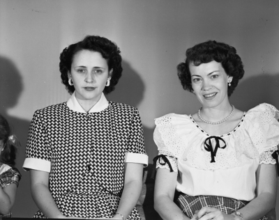 Mrs. Luther Herring, 3704 Fifth Avenue, recently was elected president of Gamma Chapter of Pi Alpha Kappa sorority. Mrs. Bettye L. Jones, (wife of Burl E. Jones Jr.), 4305 Hampshire, a member of Gamma Chi Chapter of Pi Alpha Kappa sorority, has been elected state president of the sorority. Published in Fort Worth Star-Telegram morning edition, June 22, 1950. Two woman sitting together and smiling wearing dress.