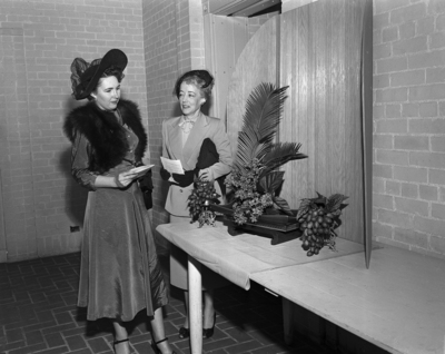 Second District, Texas State Garden Clubs, Inc., was well represented at the meeting at Westover Town Hall of the Fort Worth Council of National Accredited Flower Show Judges. Left, Mrs. W. LeRoy Hay, of Gainesville, and Mrs. Howard S. Kittel, member of the hostess council, discuss an arrangement made by Mrs. Kittel.