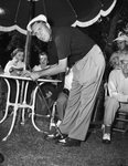 E. J. (Dutch) Harrison, who fired a 68 to stay within striking distance of the lead, pauses to sign the score card at end of play. Published in Fort Worth Star-Telegram, morning edition May 28, 1950.