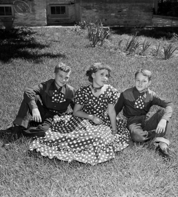 Catching their breath after a square dance session are Thurman Harden, left; Rosemary Bradford, center, and Larry Smith, who attended a party at the Woman's Club. Published in Fort Worth Star-Telegram morning edition, June 4, 1950.
