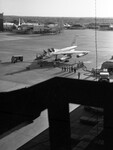 Convair's supersonic speed bomber, XB-58 on runway with ground crew.