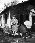 Mr. and Mrs. O. F. Turpin look through burned home and ruined possessions and find a Bible.