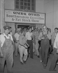 International Association of Mechanists District Lodge 776 members steam out of Will Rogers Memorial Coliseum Wednesday night, heading homeward after a vote which accepted Convair's new labor contract and ended the strike threat in the plant here.