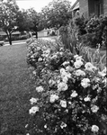 A line of "Fashion" floribunda roses forms a hedge of orange-tinted deep pink blossoms at the home of Mr. and Mrs. J. Homer Morrison, 1744 Oakland. The roses bloom in the spring, then rest to bloom again in the summer. They usually present four successive series of blooms before frost in the fall.