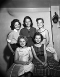 Sheryn Camper, Karen Kelly and Jan Smith, back row left to right and Judy Curtis and Shirley Little, seated left to right, were hostesses at a dance Friday.