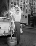 E. J. Mann displays the 42-pound string of channel catfish he caught on a rod and reel below the Eagle Mountain Lake dam.