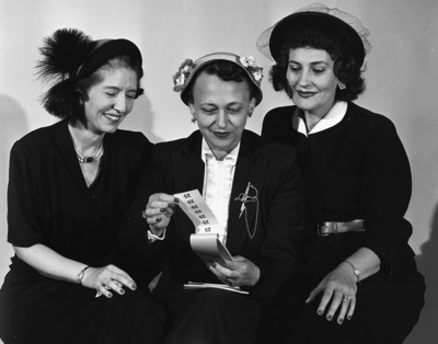 Mmes. B. E. Elleman, left, Leo S. Lederman, center, and Maurice Chon plan details of a family fair, to be sponsored by the Council of Jewish Women starting in the recreation building. Published in Fort Worth Star-Telegram morning edition May 21, 1950.