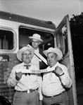 Backers of North Side's Pioneer Days Celebration and Rodeo left Fort Worth Wednesday morning for East Texas, extending invitations to attend the pageant which starts Saturday. Three of the group were W. O. Freeman, left, trip chairman; Charles Cotten, center, of the Chamber of Commerce, and Sam Mitchell. The group was to have lunch in Terrell.