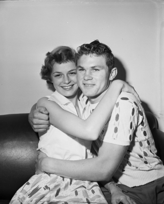 Beverly Louise Key, 14, of Fort Worth and Horton Adams, 17, of Midland were separated on demand of her father, who said he would seek to have their marriage annulled. They are shown as they appeared in the district attorney's office while their parents conferred there. Published in Fort Worth Star-Telegram, evening edition June 1, 1950.