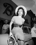 Beverly Thurman sitting on car.