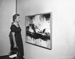 From Whitney Museum- Mrs. Mary Van Zandt Williamson view a Balcomb Creene oil, "Composition: The Storm," part of the "Nature in Abstraction" exhibition from the Whitney Museum of American Art.