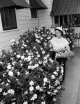 Image shows Mrs. C. M. Grubbs, 3624 Townsend Drive, picking gardenia blooms at her home. She gives them to hospitals, churches, schools. Published in the Fort Worth Star-Telegram morning edition, June 4, 1950.