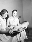 Fifty graduates of the Peter Smith School of Nursing register for the school's golden jubilees program marked the first day by class reunions and a get-together party for alumni and their families. Presiding at the jubilee is Miss Pat Baker, a 1950 graduate and president of the Alumni association. Her mother, Mrs. R. G. Baker, a 1921 graduate of the school and an Alumni director is also attending