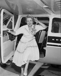 Flying Farmer Queen - Mrs. Betty Anderson of Medina, pretty mother of six children, alights from a plane at Meacham Field after being crowned queen of the Texas Flying Farmers and Ranchers Association.