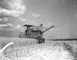 Full Swing - Combines by the thousand rolled over Texas wheat field last week harvesting the best crop in recent years. Now centered in the West Central Texas region, the harvest is rapidly pushing on to the Plains. Combine operator Marvin Grubbs, right, and Wesley Seeton harvest about 30 bushels to the acre on the W. L. Seeton farm, near Mansfield.