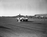 Eagle Mountain Races. Jimmy Stout waving flag at Frank Davis in 60 mile feature.