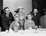 At GOP Luncheon, Republican Luncheon. Seated Mrs. John R. Black, Dallas, and Bertha Adkins standing Walker A. Brents, Mrs. Heard Floore, and Ed Mayer, Sonora at luncheon.