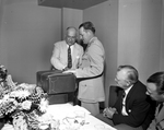 From left to right is: Amon G. Carter, and General Roger M. Ramey, and George Thompson, seated. This picture was taken at Fort Worth's parting salute to Major General Roger Ramey.