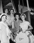 Politicians with looks. Bluebonnet Girls State Convention. Phoebe Joyce, Sandra Marlar, Maudie Bell, Beryl Ann, Tolbert and Dollie Dollins.