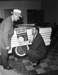 Engraved hubcaps drive, Detective H. W. Jordan, with John Strother, President of Fort Worth Claim Men's Association.
