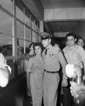 Private Elvis Presley with Nancy Cathcart at Amon Carter International Airport, traveling from Memphis back to Fort Hood, Texas, 06/14/1958