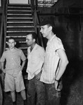 Attempted drowning. Jim Martin, and Allen Christian, Texas Electric Service Co. employees rescuers, man on left unidentified.