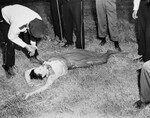 Attempted drowning. Unidentified policeman talks with Mrs. Lokell Hudson, after drowning attempt.