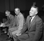 The defendants in Tarrant County's gravel scandal, left to right, Jess J. Gray, Dwight C. Plemons, and Precinct 3 Commissioner Johnson. Their attempt to win the dismissal of indictments against them is rejected by the Criminal District Judge McGee.