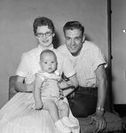 Portrait of Evelyn and Harold Fletcher with their little bundle of joy, Doug. The family visited the Star-Telegram building, were several coworkers from the Business Office and Composing room got to meet the seven month old baby.
