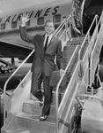 Jimmy Weaver, North Side High and North Texas State College trackman boards plane at Amon Carter Field, en route to Bakersfield, Cal., where he will run sprints in the National AAU track meet.