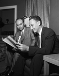 J.L. Pearce, left, regional postal installation manager, and Harry Hobbs, regional personnel manager from Dallas. Both gathered for the opening session of the Postal Workers Convention.
