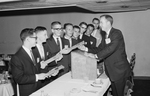 Chairman Roy Coleman, right, of the Fort Worth Chapter of the Texas Society of Profeessional Engineers. He is presenting and award to eight mathematics and science students left to right, Larry Ferstenfeld, Walter Kovar, Mike Wilson, David Patterson, Richard Pitt, Clifford Pope Jr., Paul Smith, and Jack Dugan.