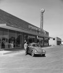 Ray Golden, general manager for Foreign Car Company, exclusive dealers for Volkswagen in Fort Worth area, stands outside the new building. The company will celebrate their third anniversary.
