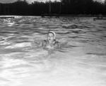 Image of Patsy Teague, 3601 Wichita, strives to improve her swimming skill. Image shows a young woman in a large pool. Published in Fort Worth Star-Telegram morning edition June 4, 1950.