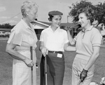 Ready for start of Women's West Texas Golf Association tournament at Glen Garden Country Club are (1-r) Mrs. Morris Pois of Wichita Falls, president of the association. Mrs. Hiram Parks, Lubbock, rules chairman, and Miss Charlotte Shulz of Wichita Falls, secretary and defending champion.