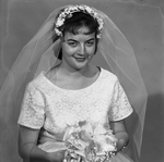Bust shot of Mrs. Charles F. Moore. She is wearing her bride dress and veil.