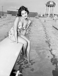 Elyna Weese, 16, contestant for the Miss Mermaid Contest. She can be seen wearing a bathing suit and posing on the diving board of Ridglea's pool.