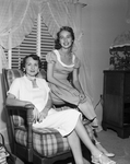 Image shows Mrs. Lloyd Sawyer, 413 Ridgewood , left, and daughter. Peggy, Arlington Heights High School cheerleader. They are spending two weeks in Houston at the Shamrock Hotel. Published in the Fort Worth Star-Telegram evening edition, June 7, 1950.