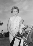 Mrs. J. H. Holcomb, Fort Worth shared nine hole medal honors. She can be seen holding a golf club.