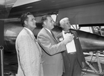 Bill Keel of Midland, left, and Jake Taylor of Fort Worth, right, officials of the Texas State Juvenile Officers' Association convening here, are conducted on a tour of Convair by I. B. Hale, chief of security at the big plant.
