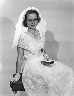 Image shows a wedding shot of Mrs. Garland D. Miller in her wedding dress. Published in the Fort Worth Star-Telegram morning edition, June 11, 1950.