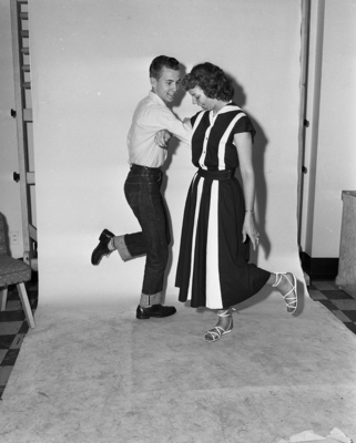 Young Handley dancers, Lorene Arman and Jimmy Crow, preformed the Charleston during the T&P Minstrel Show Star-Telegram Free Milk and Ice Fund. The benefit was a part of the Texas and Pacific Railways effort to fill as many quarts of milk as possible for underprivileged children, Young Handley dancers, Lorene Arman and Jimmy Crow, preformed the Charleston. Published in the morning edition, June 9, 1950.