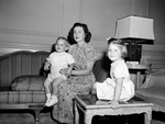 Image shows Mrs. W. J. Belz, 2613 Wayside, with her children, Billy and Anita. She was recently honored by her mother, Mrs. E. B. Melton, with a luncheon at Fort Worth Club. Before she and Mr. Belz left for St. Louis to visit Belz's parents, Mr. and Mrs. W. F. Belz. Published in the Fort Worth Star-Telegram morning edition, June 12, 1950.