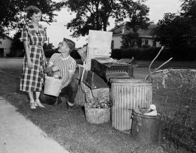 Image shows Mrs. Ray Hancock of Handley Garden Club and Doyle Marshall, a worker, in the Fort Worth city wide clean-up and beautification campaign. Published in the Fort Worth Star-Telegram morning edition, June 8, 1950.