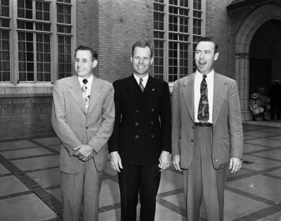 Certificates of recognition for meritorious service in rural work were presented to the pictured trio, each Methodist Pastors, at the church's Central Texas Conference. Left to right, the men are Reverends Homer Cox of Alvarado, George M. Matthews of Rogers, and Roy Felder of Blooming Grove. Published in the morning edition, June 9, 1950.