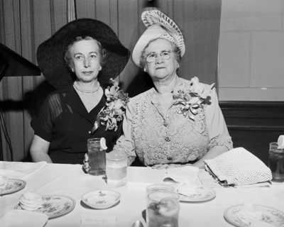 Image of Mrs. E. Brinton Ingram, left, incoming president, and Mrs. O. R. Grogan, retiring president of the Woman's Club, who were honored at the club's annual magnolia luncheon.