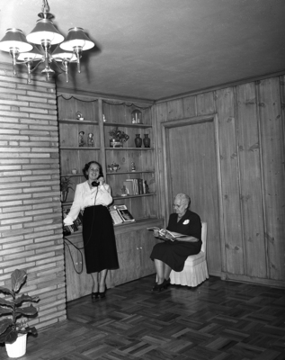 Pictured at the corner of the den at the new home of Mr. and Mrs. James Evans Richards Jr., are Mrs. Richards and her mother, Mrs. Anna Francke. The Richards were "just in" their new home for the holidays.